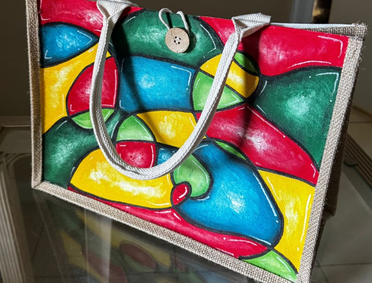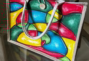 Each bag is hand‑painted using bold movement, color, and texture inspired by nature, culture, and heritage. Every piece is signed, numbered, and created with patience, passion, and depth transforming natural materials such as burlap and canvas into rare collector artworks.